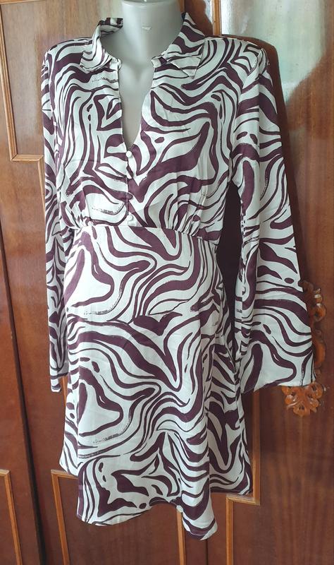 Нежная ткань, похожая на шелковую ПОГ 55см ПОТ 43см ПОС 58см Длина 92см Рукав клеш, сбоку есть скрытый замочек. Новая, с биркой!
