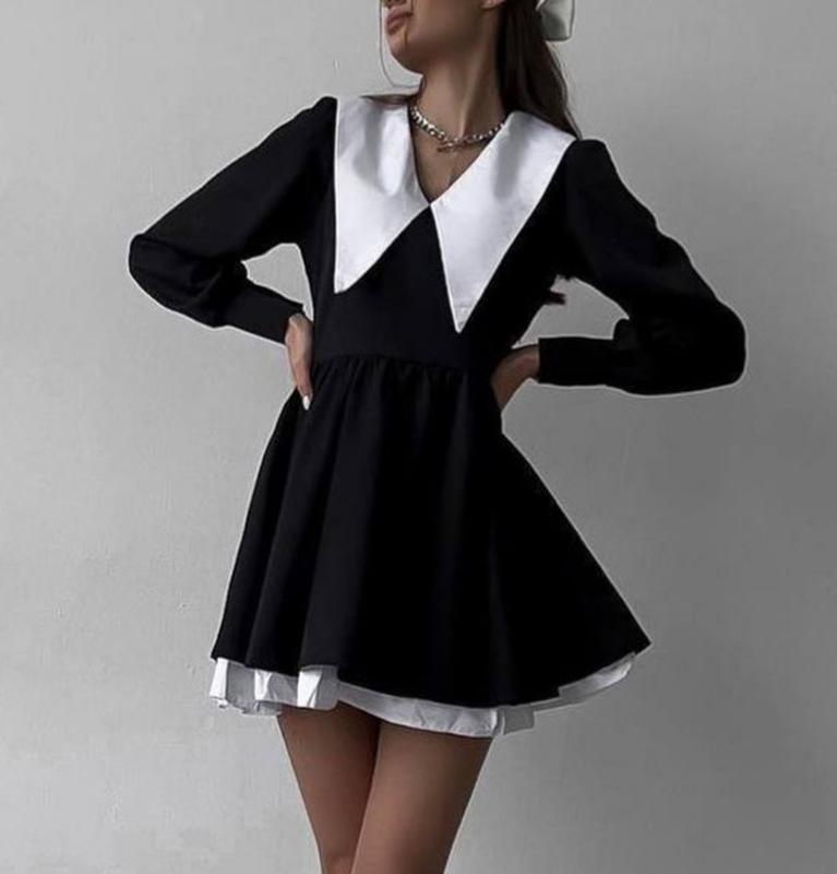 Черное платье лолита с воротничком🖤 🔹Размеры: XS, S, M, L 🔹Цвет: черный 🔹Тканина: костюмка + котон Белые вставки - обманки.