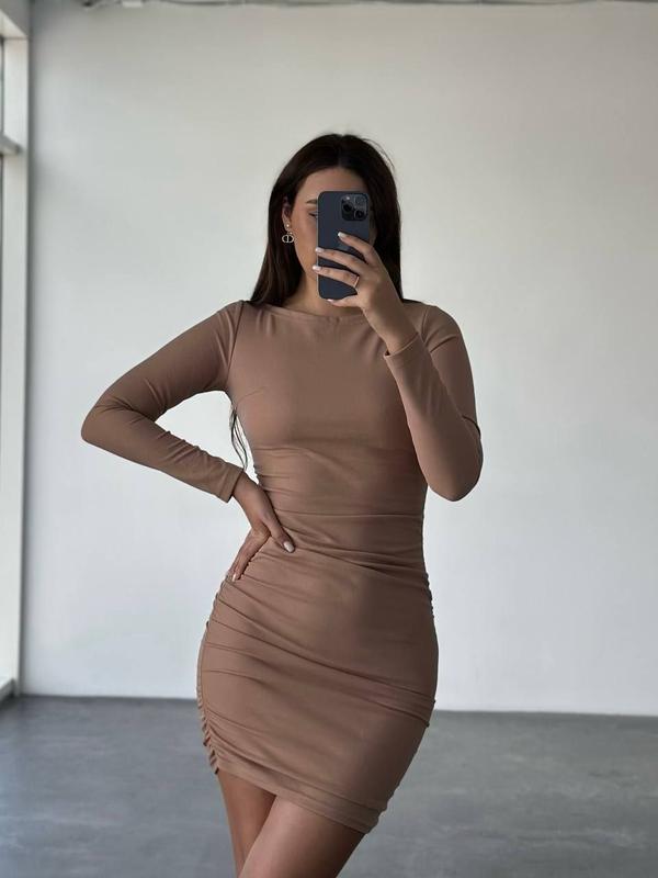 Арт 824-1333 🔸Сукня пуш апп ▪️Тканина: крепдайвінг ▪️Розмір: 42-46 (onesize) ▪️Колір : мокко та чорний Ціна 490 грн Супер якість за низькою ціною Плаття пуш апп зі збірками з боків⚡️Дизайнерський крій вигідно скоригує Вашу фігуру: збільшить попу та груди, приховає животик Довжину сукні можна регулювати під Ваш настрій З боків на резиночках. ЗАМІРИ ВИРОБУ (добре тягнеться): ОГ 82-94 см ВІД 62-72 см ПРО 88-100 см Довжина 75-90 см Рукав від плеча 60 см