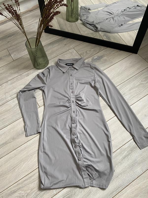 Базовое платье-рубашка в сером цвете Размер: S Длина: 83 см Материал: полиэстер Состояние: новая, без картонной бирки