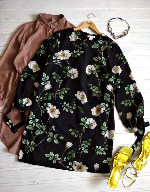 Красивое платье в цветы. Есть боковые карманы, рукава на завязках. Ткань средней плотности. ПОГ 55 ПОТ 58 ПОС 61 Длина 93 Плечи 40 Рукав 62.5 Состав: 100% полиэстер