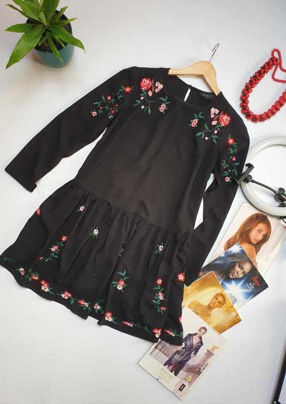 Вышитое платье Mohito Стан - идеальный. Цвет насыщенный черный, фото засветит. Размер: 36 Составляющий: вискоза Замеры: длина 80 см, рукав 56 см, ПОГ 46 см, ПОТ 50 см.