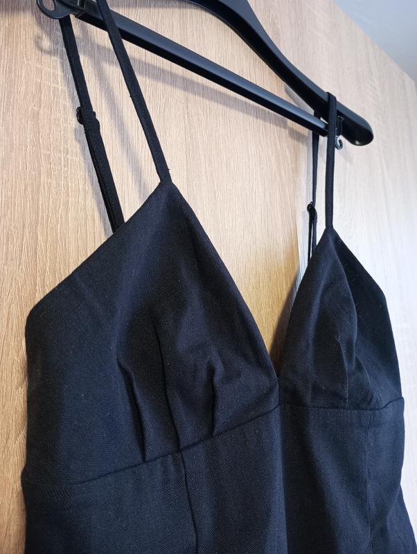 Черное платье мини с небольшим разрезом на ноге и регулируемыми бретелями. На худи девушка, так как платье размера XS. По замерам пишите в ПП :)