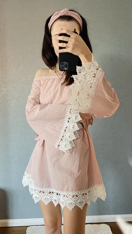 Классное платье с вышивкой,цвет пудра. На талии завязывается. Размер от XS-M