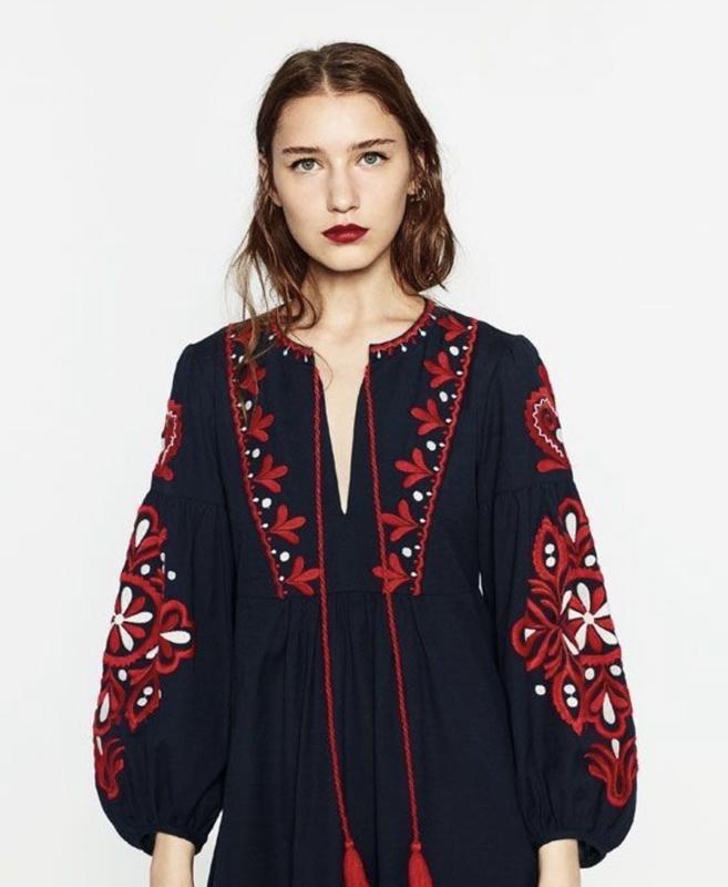 Вышиванка в темно-синем цвете, свободный фасон, невероятная по фигуре, объемные рукава. Цена 970 грн Единый размер на XS-M Длина 87 см Рукавчик 52 см Полуобхват талии 45 см Полуобхват груди 46 см Плечи 38 см