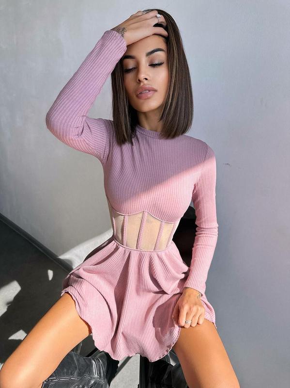 Приталена сукня з корсетною вставкою та спідницею-сонцем 7341 🎩 кр.од. ▫️ ціна: 820 грн ▫️тканина: трикотаж рубчик ▫️розмір: S та М