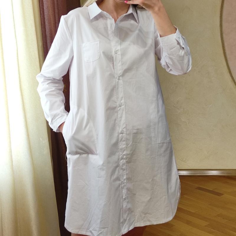 Белое платье-рубашка. Можно также носить как удлиненную рубашку. Не просвечивает Размер указанный XXL. Іде на L ПОГ - 51, ПОТ - 51, ПОБ - 56. Длина 86.
