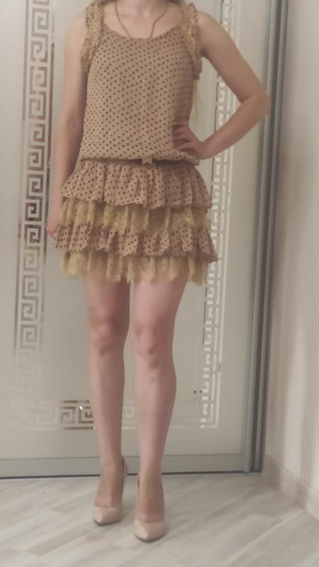 Симпатичное шифоновое платье с оборками в отличном состоянии,разм S-M