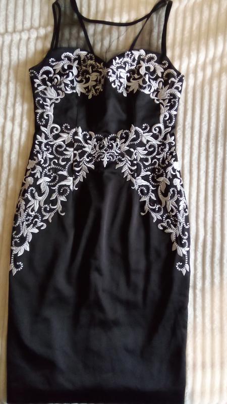 Размер Хс. Есть дефект, показано на последнем фото. Платье очень красивое, с набивной, объемной машинной вышивкой и прозрачной сеточкой сверху.