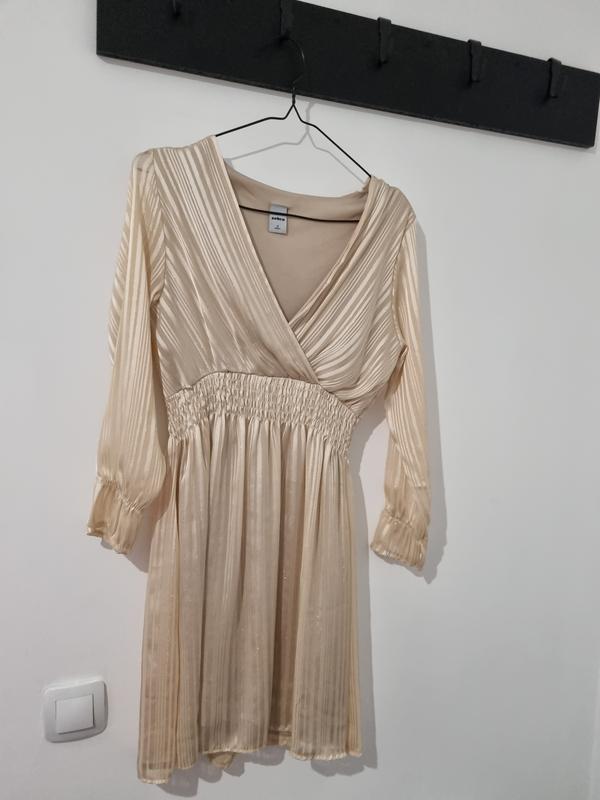 за счет резинки очень красиво подчеркивает талию, ткань идет с блестками, очень красиво мерцает на солнышке