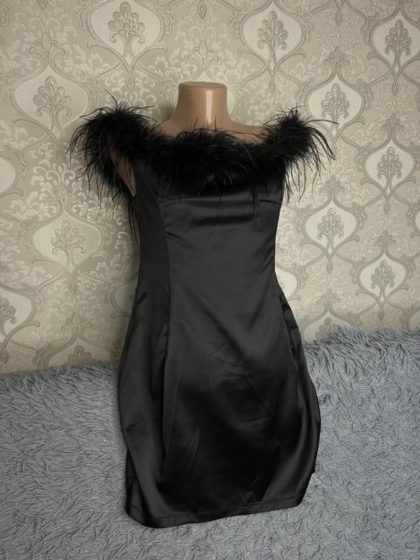 Черное платье женское с перьями Фирма boohoo Размер 44-46 Замеры: Длинное платье 66 см Полуобъем груди 45 см Полуобъем талии 39 см Полуобъем бедер 50 см