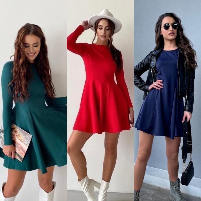 Очаровательное и прекрасное платье, в котором вы не останетесь без внимания с юбкой солнце ☀ клеш 📌 Модель 435 💃 Размеры: 42-44 и 46-48 💜💜 📌 Ткань дайвинг 👉 хорошо тянется и приемная к телу ✔️Кольори бутилка, темно-синий, красный 📌 Замiри 42-44 Грудь 82-88 Бедра 90-96 Длина 85 Рукав 60 📌 Замiри 46-48 Грудь 90-96 Бедра 98-104 Длина 87 Рукав 60