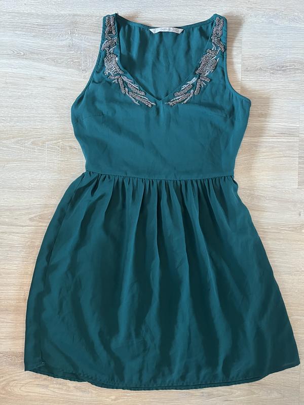 Платье зумрудного цвета фирмы Zara с красивой вышивкой