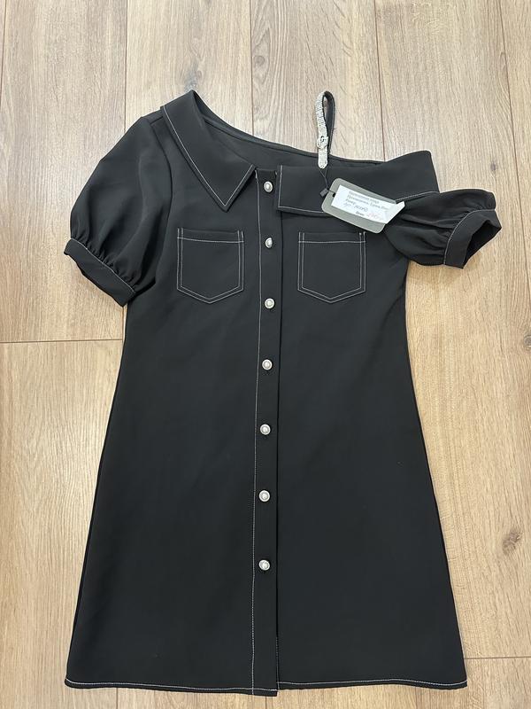 Стильна сукня трапеція. В чорному і білому кольорах, одне плече відкрите. Фабрична Італія. Розміри s