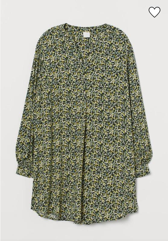 Вискозное свободное платье с длинными рукавами и v-вырезом в цветочный принт