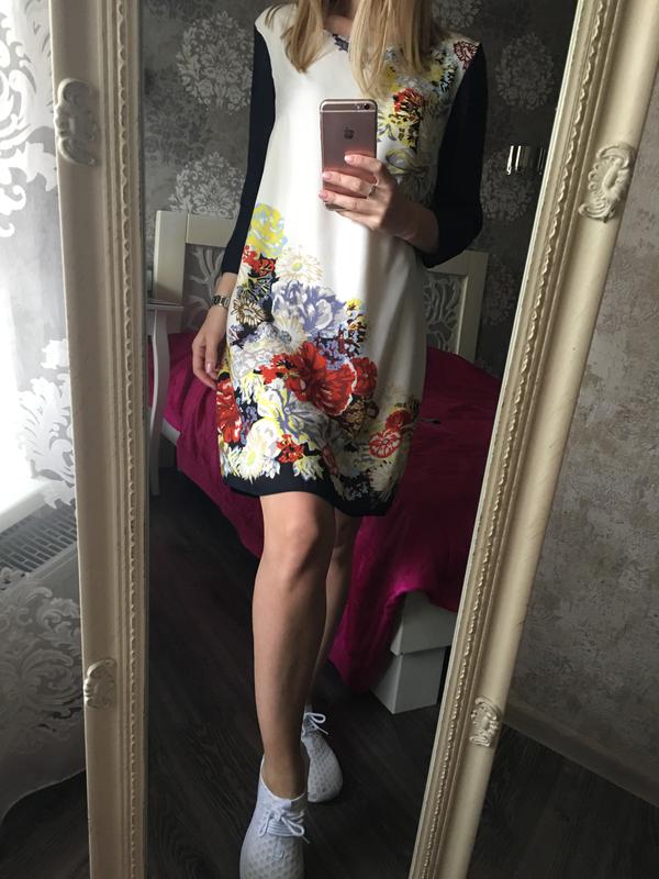 Длинна 86, ог 50, бёдра 53, рукав 44, размер с-м, цвет кремовый в яркие цветы . Как новое!!