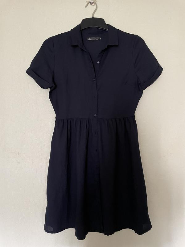 Платье темно-синего цвета Легкая полупрозрачная ткань Платье выше колена Приталенная, на пуговицах В идеальном состоянии
