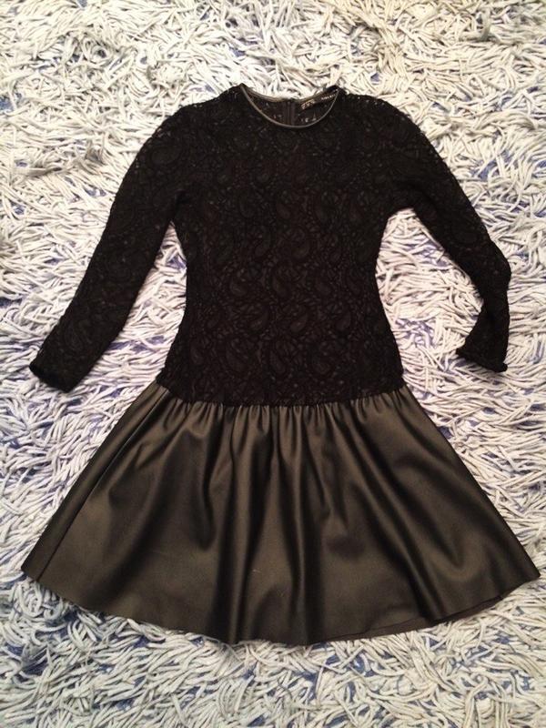 Стильне плаття ZARA в стилі Baby doll!!! чудове мереживо, цупкий шкірзам, який тримає форму і лежить складками, є підкладка (на фото видно, що бюстгалтер не просвічуватиметься), рукавчик 3/4
