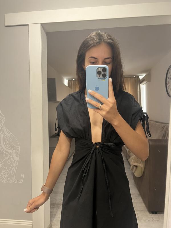 Классное черное платье, на талии затягивается на шнурочках. На плечах тоже самое, можно самому регулировать длину. Одето на Хс Бренд PRETTYLITTLETHING