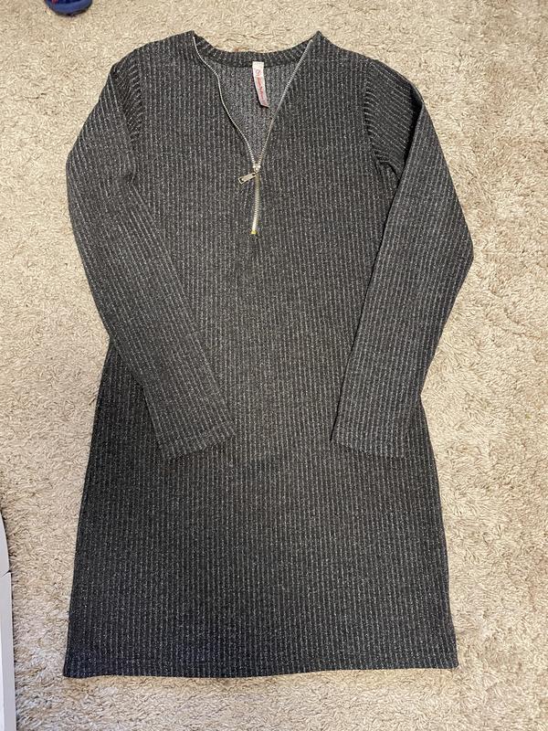 Очень классное платье в рубчик, спереди замочек Тканина тягнеться Замеры в свободном состоянии ПОБ 47 см ПОГ 45 см Плечи 37 Длина 90 см