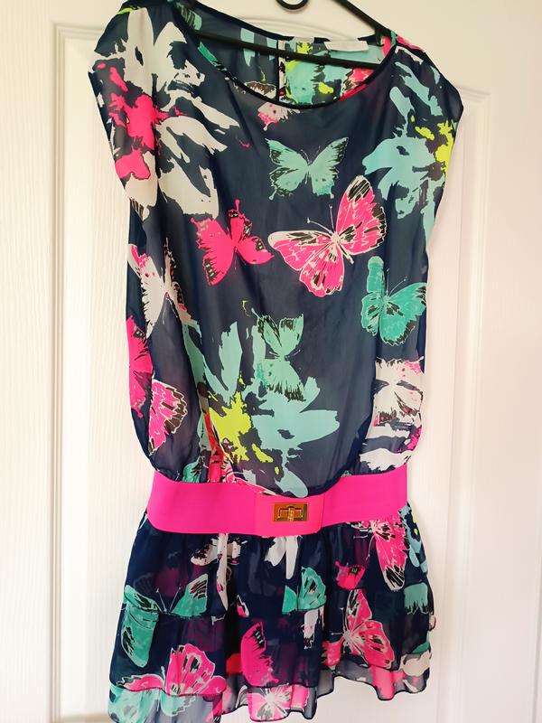 Платье короткое, спинка на завязках. Размер на M. Пог 50см, длина 85см, пот 37-48см.