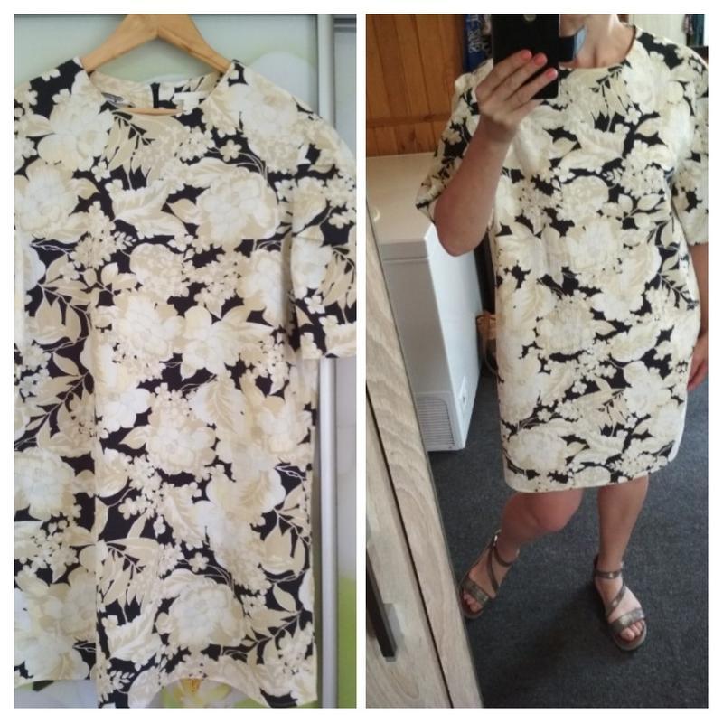 Красивое коротенькое платье с объемными рукавами, сзади замочек на 15 см. длина-81 рукав-32 пог-54 пот-54 поб-56 по низу 58