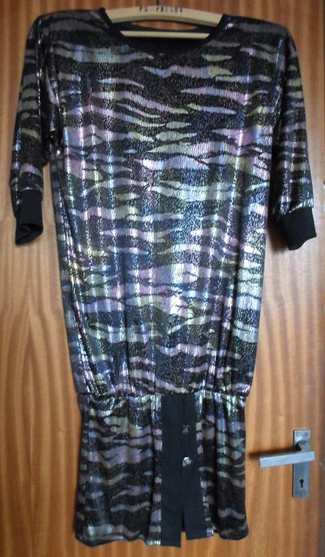 Продам вечернее блестящее платье р.36-38, учитывая фасон, подойдет и на больший размер; хорошо скрывает нескладности фигуры. Длина 100см., ширина подмышками 51см, длина рукава 34см.(3/4).