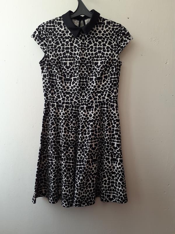 Симпатичное платье в интересный принт. Длина 85 см, ОГ 39 см, ОТ 34 см. Тянется.