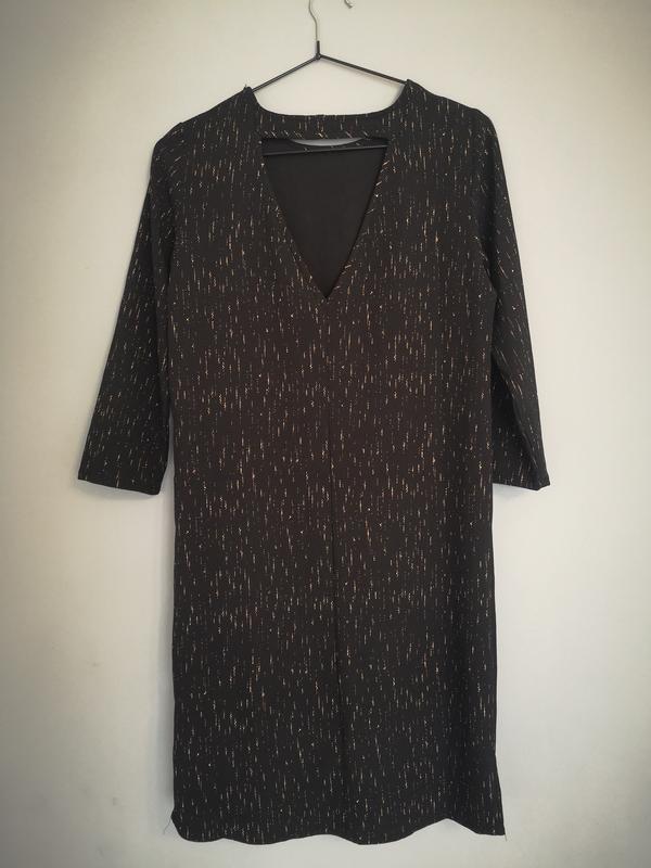Черное платье, свободного фасона. Очень красивая спинка. Платье легкое, из тонкого материала не просвечивается. Размер S. Без дефектов.