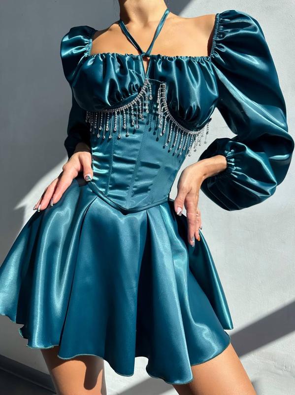 Идеальное атласное платье с корсетом со стразами, платье мини с корсетом атлас, платье мин...