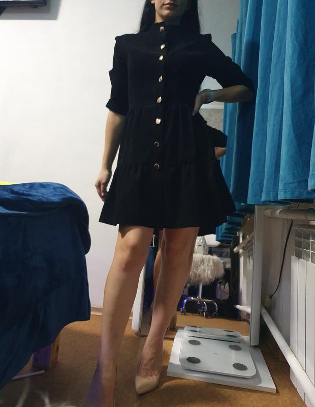 Красивое платье, длина 85см, я носила на рост 156см Материал вельвет местами покацаные пуговицы, но не критически, так и покупала