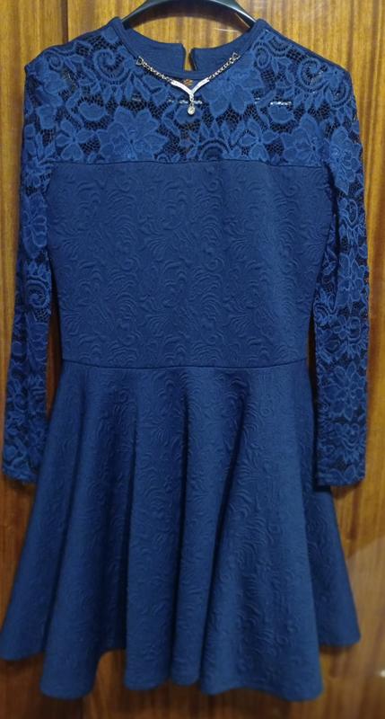 Женское трикотажное платье со вставкой гипюра.Размер s. По ткани узор набит.Гарное качество.