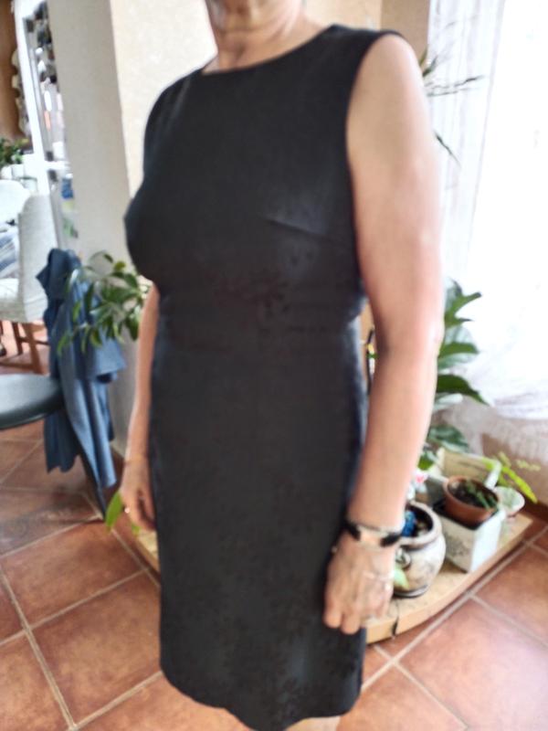 Классическое маленькое черное платье. Выполнено из качественного трикотажного жаккарда. Подойдет и в офис, и на вечеринку. Есть подкладка. По спине- застежка на молнию. Длина изделия- 90см, ОГ-86 см, ОТ-76см.