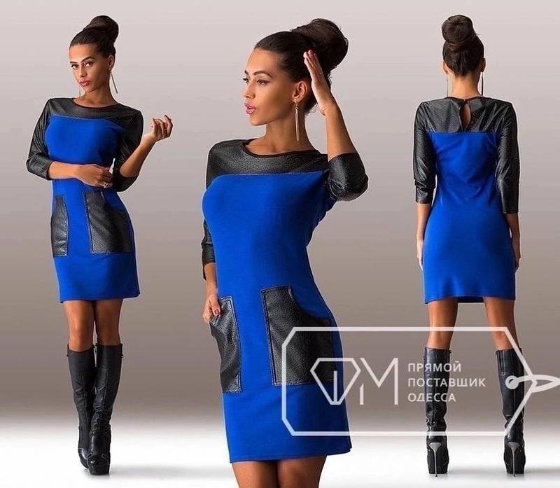 SD. Модель 527 платье Цена : 300 гр Размер : 42;44 электрик 46;48 беж Ткань: французский трикотаж+перфорированная экокожа, накладные карманы. Длина: 88 см — 42– ОГ 84-88 см ОБ 90-94 см - 44 - ОГ 90-94 см ОБ 94-98 см - 46 - ОГ 94-98 см ОБ 96-100 см - 48 - ОГ 98-102 см ОБ 100-104 см