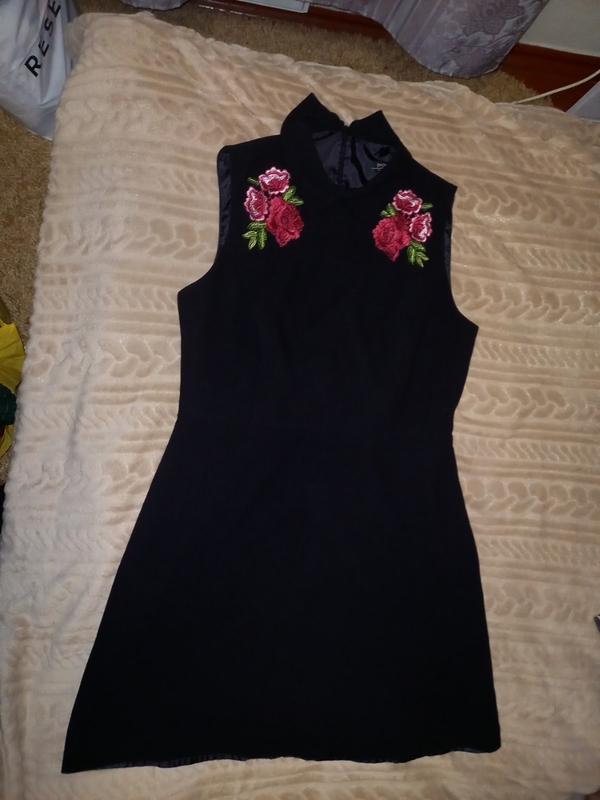 Платье черного цвета с вышивкой на комди сзади на замочке, имеет подкладку