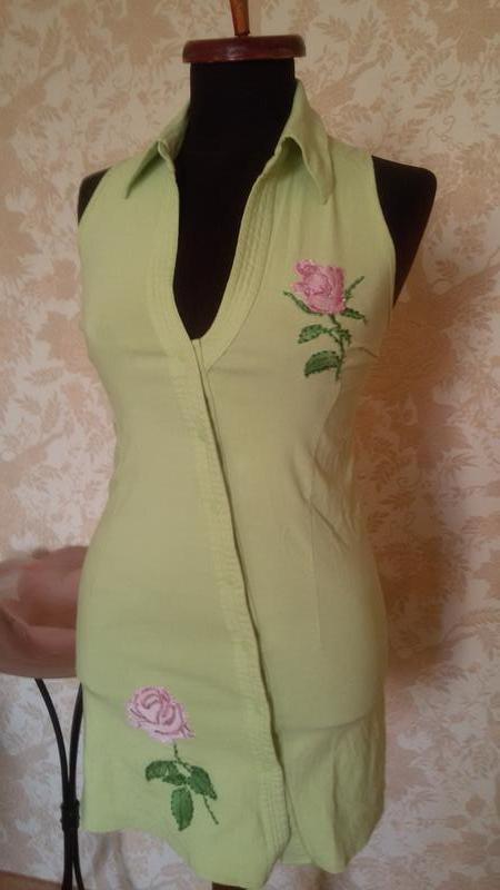 Косий крій спереду , застегается на кнопки за косою, незвично і дуже зручно! Гарно лягає по фігурі!Довжина виробу 82см.