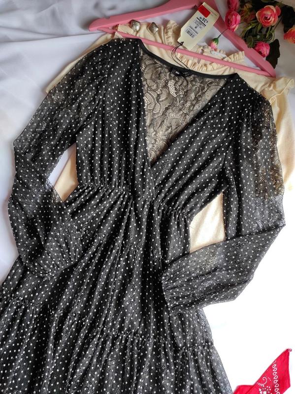 Платье женское короткое черное в белый горошек с длинными рукавами. Прекрасно смотрится и очень удобна Состояние Новый Размер указан М