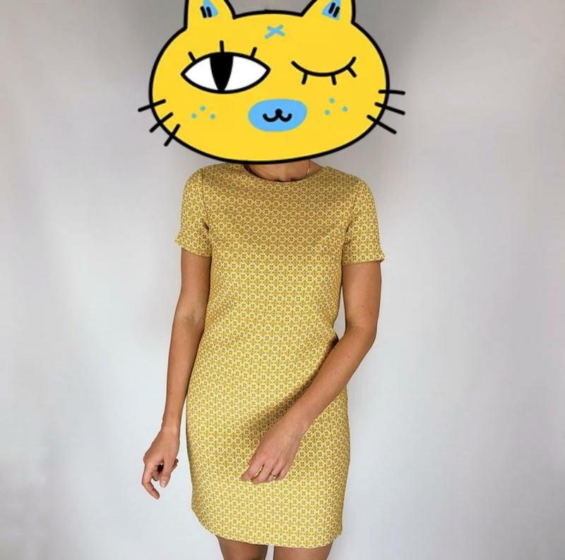Жовта сукня з фактурним візерунком і гарною спинкою. Розміру хs. має підкладку. Не дуже тягнеться. Розміри: ПОГ 40 см ПОТ 36 см ПОБ 44 см Довжина по спинці 85 см. Гудзики такі як на фото на вішаку. Перешила, оскільки ті з пластику і один поламався