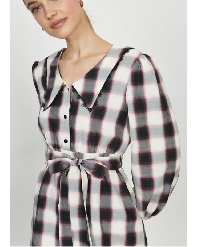 Невероятное платье с отложным большим воротником воротничком кружевом в клетку с объемными...