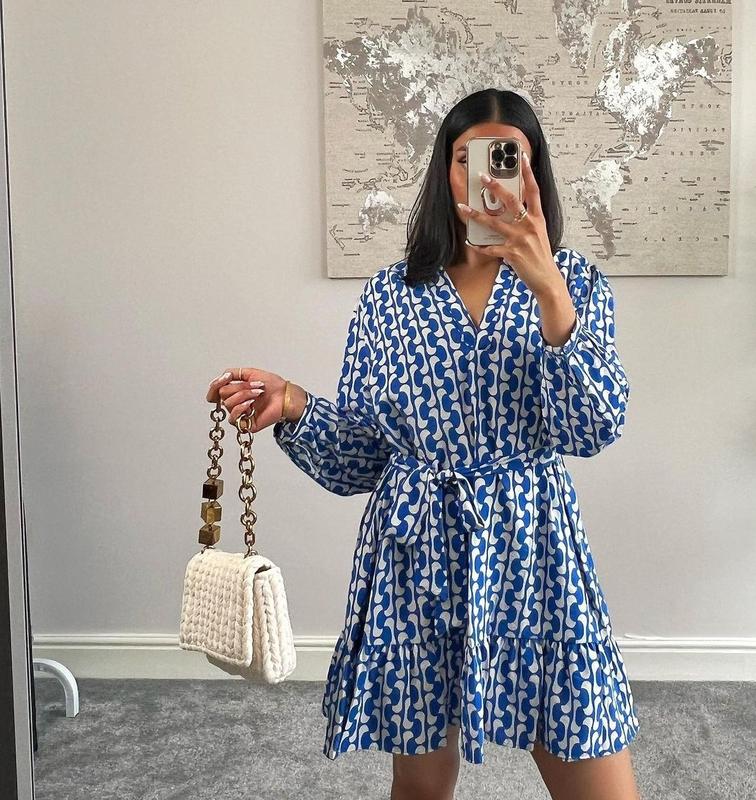 Платье сарафан синее с поясом абстрактный принт zara s 4437/105