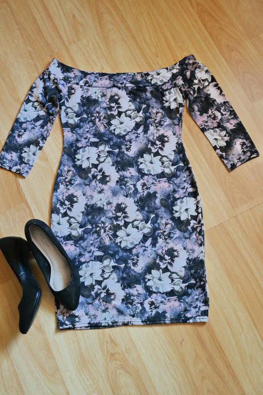 Платье с открытыми плечами в цветочный принт New Look.Состояние нового.Размер UK 10, EUR 38.Замеры - ПОГ - 37.5 см, талия - 33.5 см, длинна - 74 см, бедра - 40 см, рукав - 37 см.Ткань тянется, идеально садится по фируре