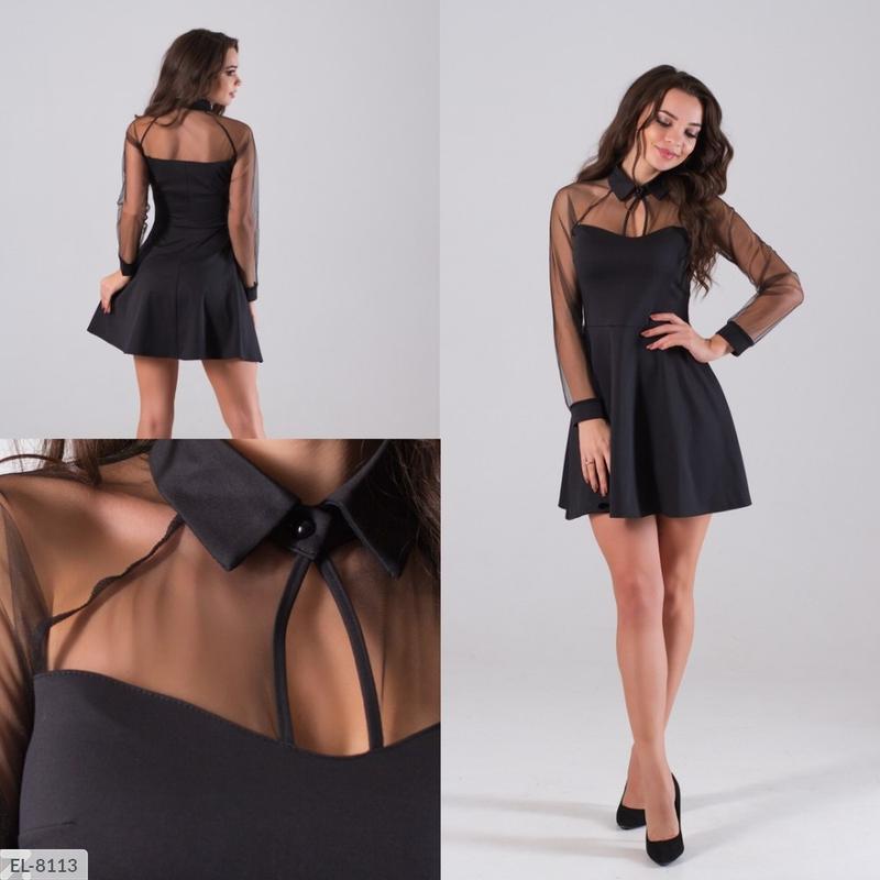 соСукня EL-8113 код 050 Размиры: L-XL Ткань: итальянский трикотаж (плотный) + Евро сетка Цвет платья: черный