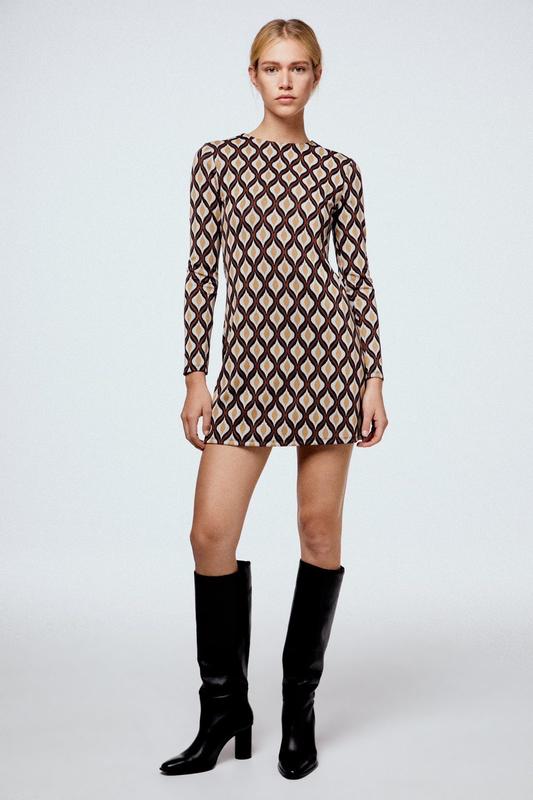 Красивое платье мини эластичное принт с 8-10 Длина 81 Плечи 38 Рукав 57 Полуобхват груди 41 плюс тянется Талии 39 плюс Стегон 42 плюс Низ 52 Состав 53 полигамия,41 полиэстер,6 эластан