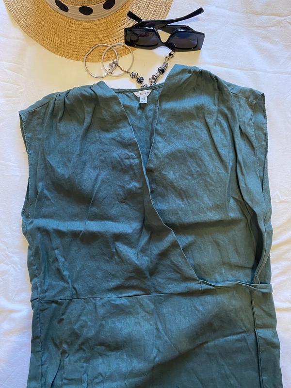 Женское ляное платья, темно зеленого цвета. Размер 44.