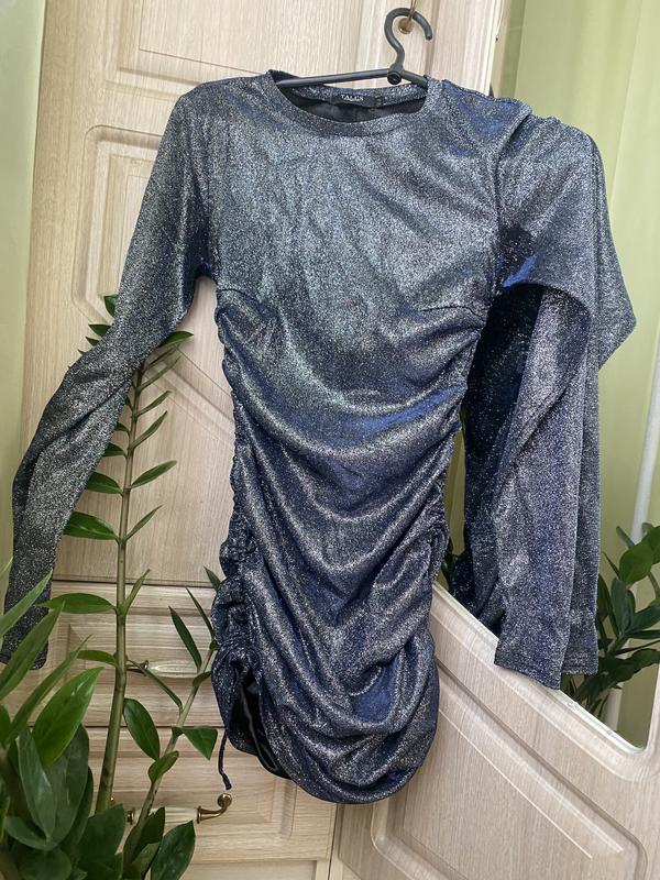 Платье мини, можно удлинить благодаря защелкам сбоку, размер s Цвет переливается, блестит