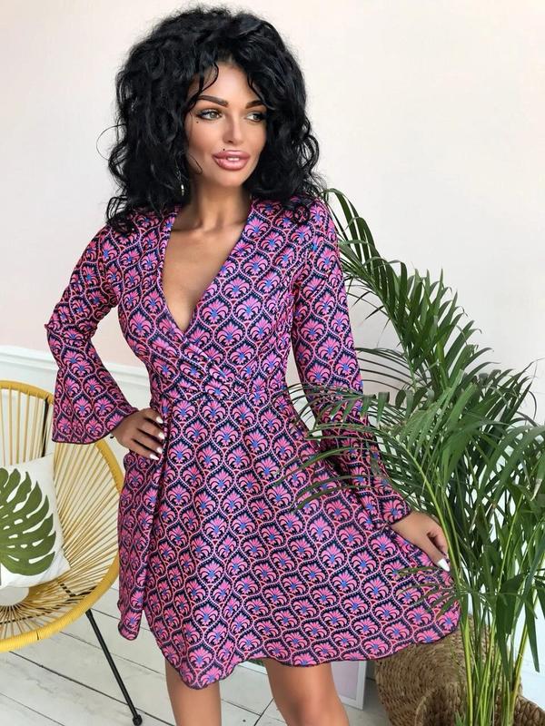 бл.фр.с. 💥💥 РОЗПРОДАЖ 💥💥 ❤️❤️❤️❤️❤️❤️❤️ СУПЕР ЦIHA 🍓🍓🍓🍓🍓🍓🍓 Платье Яркое, кокетливое платье НОРМА Юбка клёш, рукав 3/4 переходящий по крою в волан. Потайная молния сбоку изделия. Размер: 42-44 Ткань: тонкая креп костюмка