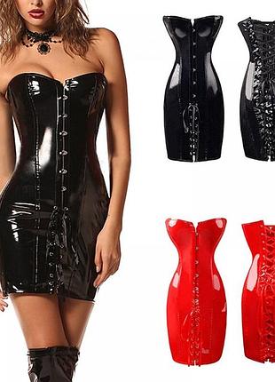 Яркое откровенное платье в классическом стиле сразу заставит обратит внимание на ее обладательницу. Корсет сделает талию более утонченной, а шнуровки спереди и сзади помогут подчеркнуть достоинства фигуры. Блестящий плотный материал с обратной стороны на тканевой основе для того, чтобы увеличить срок эксплуатации и для комфортного ношения. Можно потянуть за ленточку и . . . Мммм . . . самое желанное становится доступнее . . . Корсет на металлической косточке размер- S, M, L, XL черный и красный цвет.