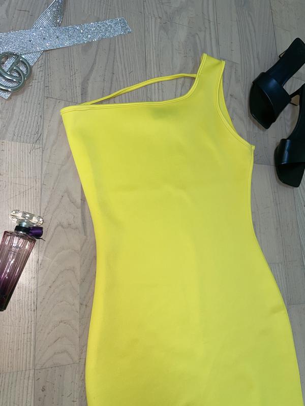 Желтое платье Pretty Little Thing на одно плечо. Дуже хороший стан. Есть незначительный нюанс на бирке. Размер: M Тканина чудово тягнеться : 95% поліестер, 5% еластан Замеры: Полуобхват груди - 39-40 см Полуобхват талии - 34-35 см Полуобхват бедер - 41-43 см Длина изделия - 83 см. Смотрите также мое другое объявления!