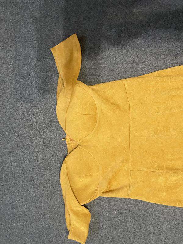 Красивое платье, которое выделит Вас на любом празднике. Тканина схожа на велюр. Цвет: горчичный Размер xs-s. Длина: 61 см Обхват груди: 86 см (подойдет на чашку А и В) есть резинки со стороны Обхват талии: 64 см Обхват бедра: 88 см.