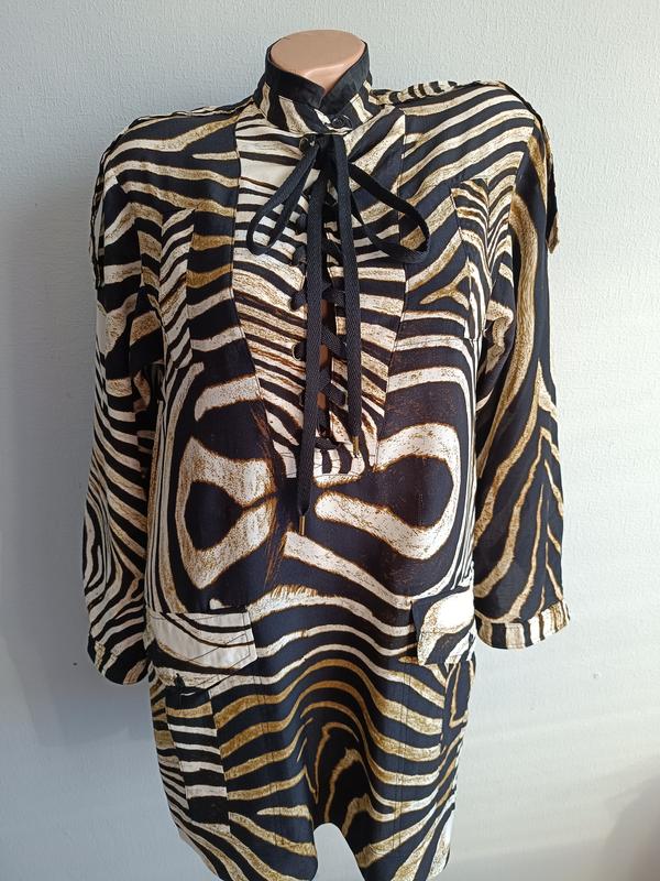 Міні сукня, туніка, принт зебри, спереду на шнурівці, на грудях та стегнах кишені, довжину рукава можно регулювати, сукня - оригінал бренду (є голограма), є в два останніх фото), в ціні враховано, маленький нюанс (дирозмір італійський 40, оріентуйтесь по вимірам: довжина - 80 см, плечі - 42 см, ПОГ - 47-49 см (за рахунок шнурівки може бути і більше), ПОБ - 49-50 см. довжина рукава - 52 см. ПОВЕРНЕННЯ та ОБМІНУ ТОВАРУ НЕМАЄ!